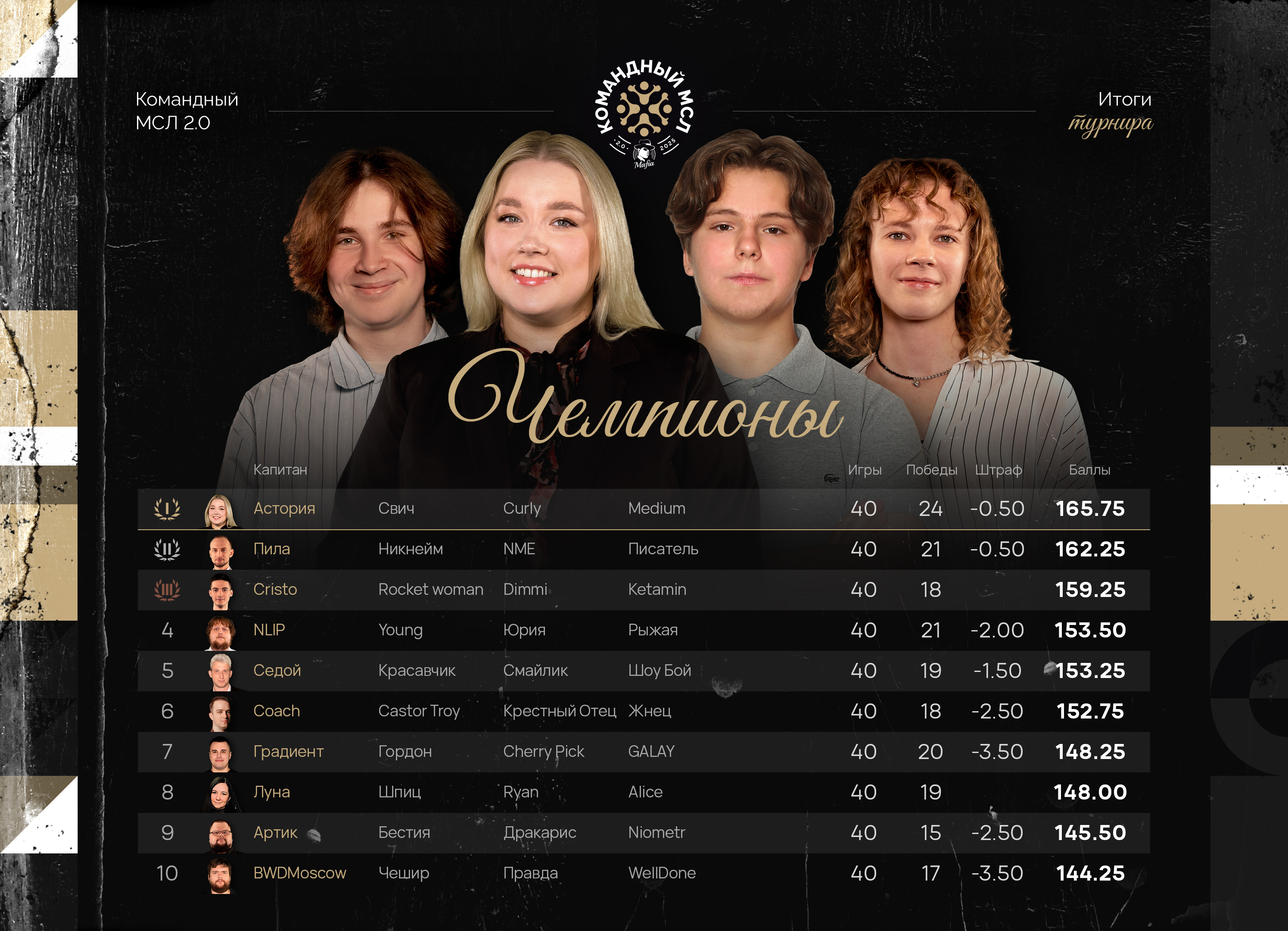 «Командный МСЛ 2» пройдёт 20–21 декабря. 40 участников ранжируются по рейтингу и распределяются на 4 корзины: в первой корзине — капитаны (игроки с самым высоким рейтингом), во второй — вторая десятка, и тд. Капитаны команд снова пройдут процедуру драфта. В прямом эфире они будут «пикать» в свою команду по одному участнику из каждой корзины. В итоге сформируются 10 команд по 4 участника. После процедуры составы меняться не будут ‼️